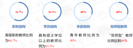 教学科研团队强大:目前机械电子工程专业已经形成了一支专业理论扎实,科研水平较高,爱岗敬业,职称、年龄结构合理,学历层次较高的师资队伍。本专业现有专职教师12人,职称结构为:教授4人、副教授4人、讲师3人、助教1人,副高以上职称教师占66.7%;学历结构为:博士2人、硕士8人、本科2人,具有硕士及以上学位的教师占83.3%;本专业教师毕业于众多国内知名高校,部分具有国外留学经历,毕业学校主要有:中南大学、国防科技大学、湖南大学、东北大学、湘潭大学、南华大学等。