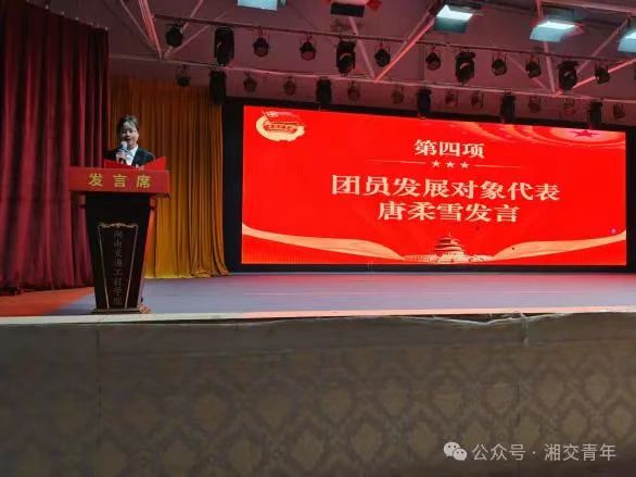 老团员代表刘欣雨和团员发展对象代表唐柔雪先后上台发言。老团员分享了自己在团组织中的成长经历,从参与志愿服务到组织校园活动,在一次次的锻炼中,深刻体会到共青团员的责任与担当。她鼓励新发展对象珍惜机会,积极参与团组织的各项活动,在实践中提升自己。团员发展对象代表则表达了对加入共青团的渴望与决心。“我们将以老团员为榜样,努力学习,积极进取,用实际行动践行青春誓言。”真挚的话语,道出了所有团员发展对象的心声。