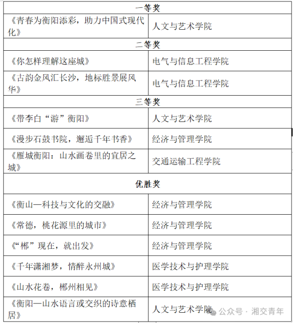 为深入学习宣传贯彻党的二十大和二十届二中、三中全会精神,贯彻落实习近平总书记关于湖南工作的重要讲话和指示批示精神,进一步激发我校青年学生文化艺术创新创造活力,丰富校园精神文化生活,校团委组织开展了第十一届湖南省青年文化艺术活动校内选拔赛。本次校赛以“青春为中国式现代化挺膺担当”为主题,涵盖“我是城市推荐官”文旅科技短视频、科普知识小视频、书法、集体朗诵、群舞、合唱6个比赛项目,吸引了全校1500余名青年学生踊跃报名,共收到315份参赛作品,展现了我校青年学子昂扬向上的精神风貌和扎实的艺术功底。