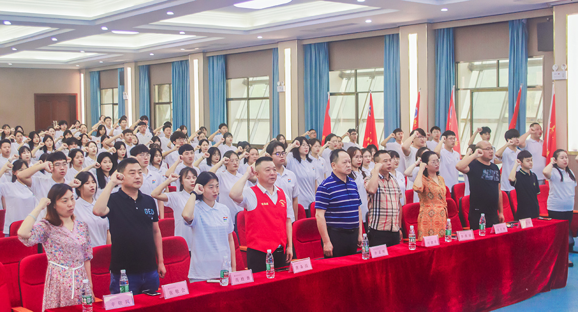 6月19日,我校在航母楼101举行2022年大学生暑期“三下乡”社会实践活动出征仪式,为即将走进基层学知识、走近群众长见识、走向一线作贡献的志愿者们壮行。副校长余孟辉出席并授旗,学校相关职能部门负责人,各二级学院团总支书记、指导教师代表、社会实践队员150余人参加出征仪式。衡阳市政协委员、衡阳市备战青年志愿者协会会长、湖南省志愿者协会副会长、衡阳市网络志愿者协会副会长唐备战应邀到会指导。出征仪式由校团委书记漆在林主持。