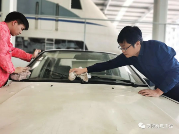 在机电工程学院党总支书记罗斐和学生支部书记夏翠云的带领下,机电工程学院全体在校党员,预备党员开始仔细的擦洗汽车,实训器械以及基地地面。