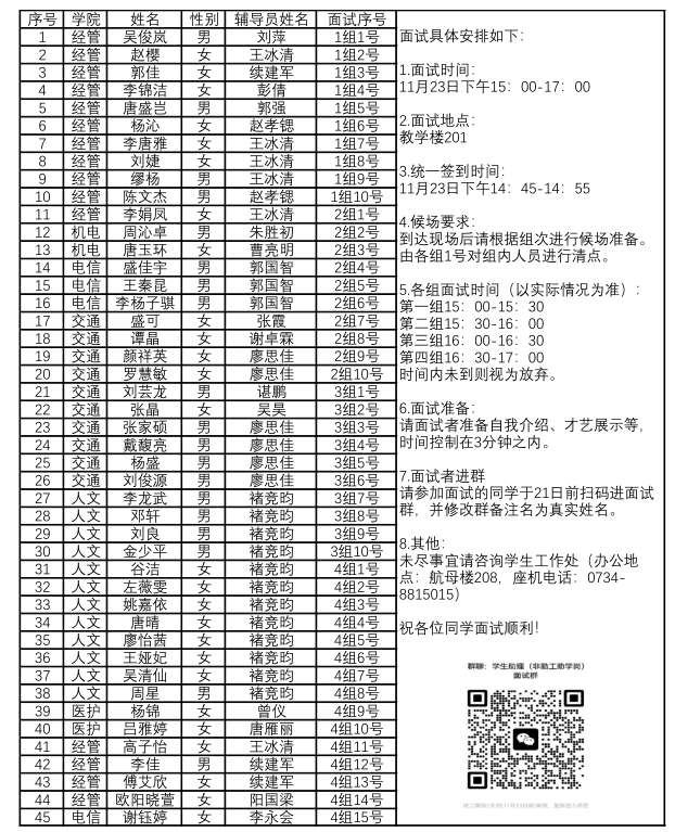 学工系统学生助理(非勤工俭学岗)面试名单及须知