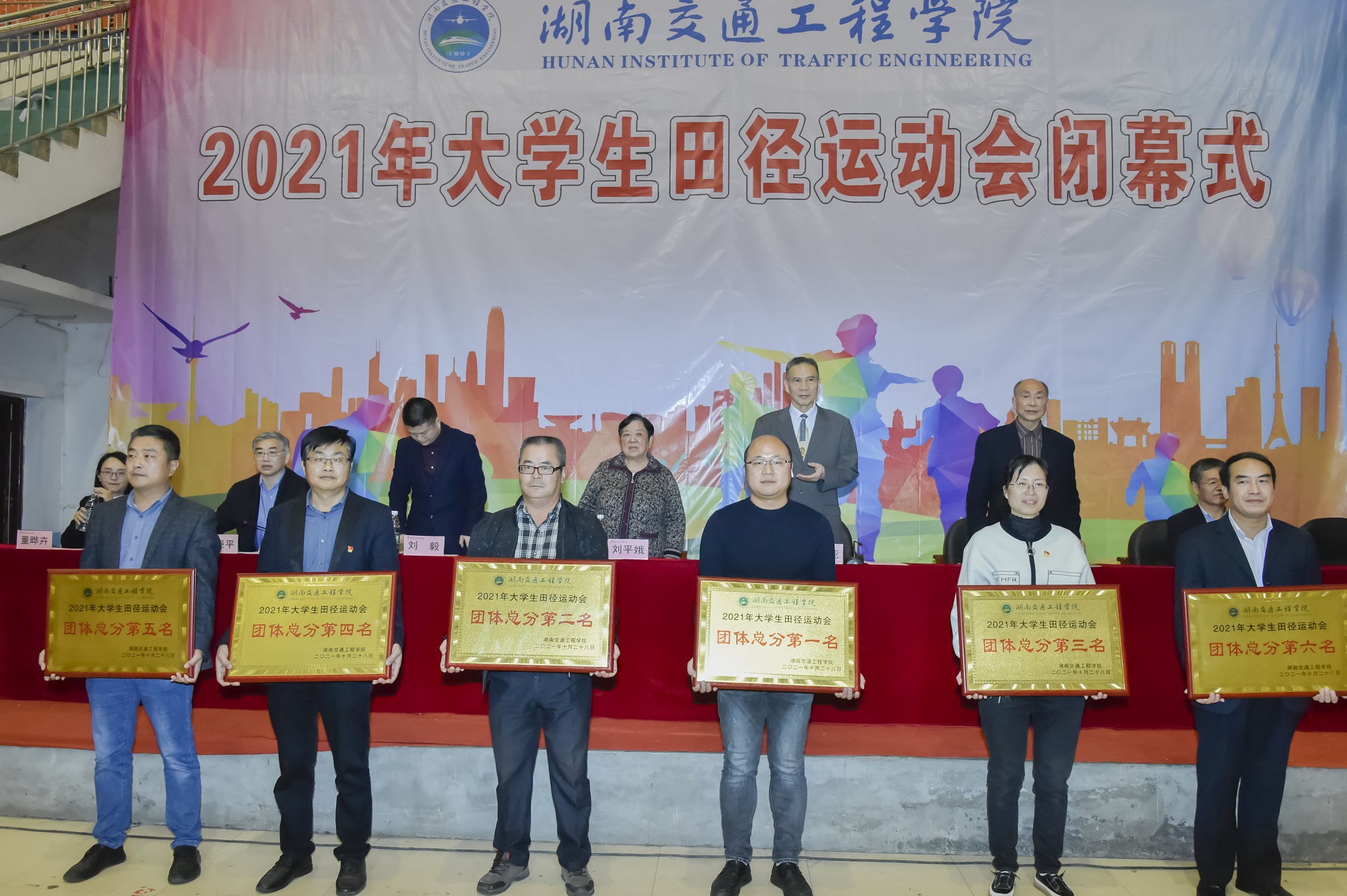 本网讯(记者  赵红深   摄影  李建华英姿飒爽展豪情,信心满怀夺佳绩。我校2021年大学生田径运动会在组委会的精心组织下,经过全体运动员、裁判员、全校师生的热情参与和共同努力,经过2天紧张激烈的角逐圆满完成各项赛事,于10月28日下午胜利闭幕。下午4时30分,学校在体育馆举行闭幕式,校长陈治亚、名誉校长刘平娥、党委副书记李先聪、纪委书记刘毅,  副校长刘初生、樊晓平、余孟辉,校董事董晔卉等校领导出席,  相关职能部门和各学院负责人,运动员、裁判员、全体辅导员和5000余学生代表参加了闭幕式。余孟辉主持。