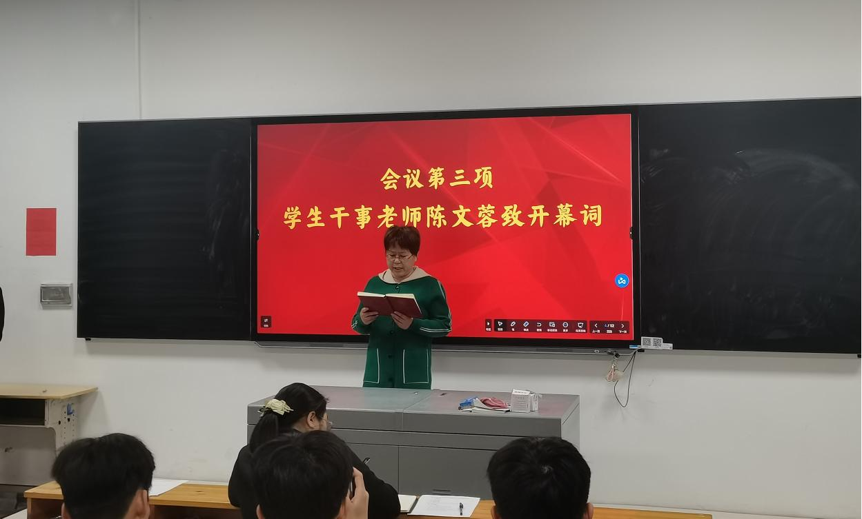 在神圣的国歌奏起声中,本次的竞选大会正式的拉开了帷幕。首先由学生干事陈老师为此次的大会发表精彩的开幕词。其中,陈老师说到恰同学少年,风华正茂,希望同学们融入到丰富多彩的大学生活中,在大学中多历练自己。
