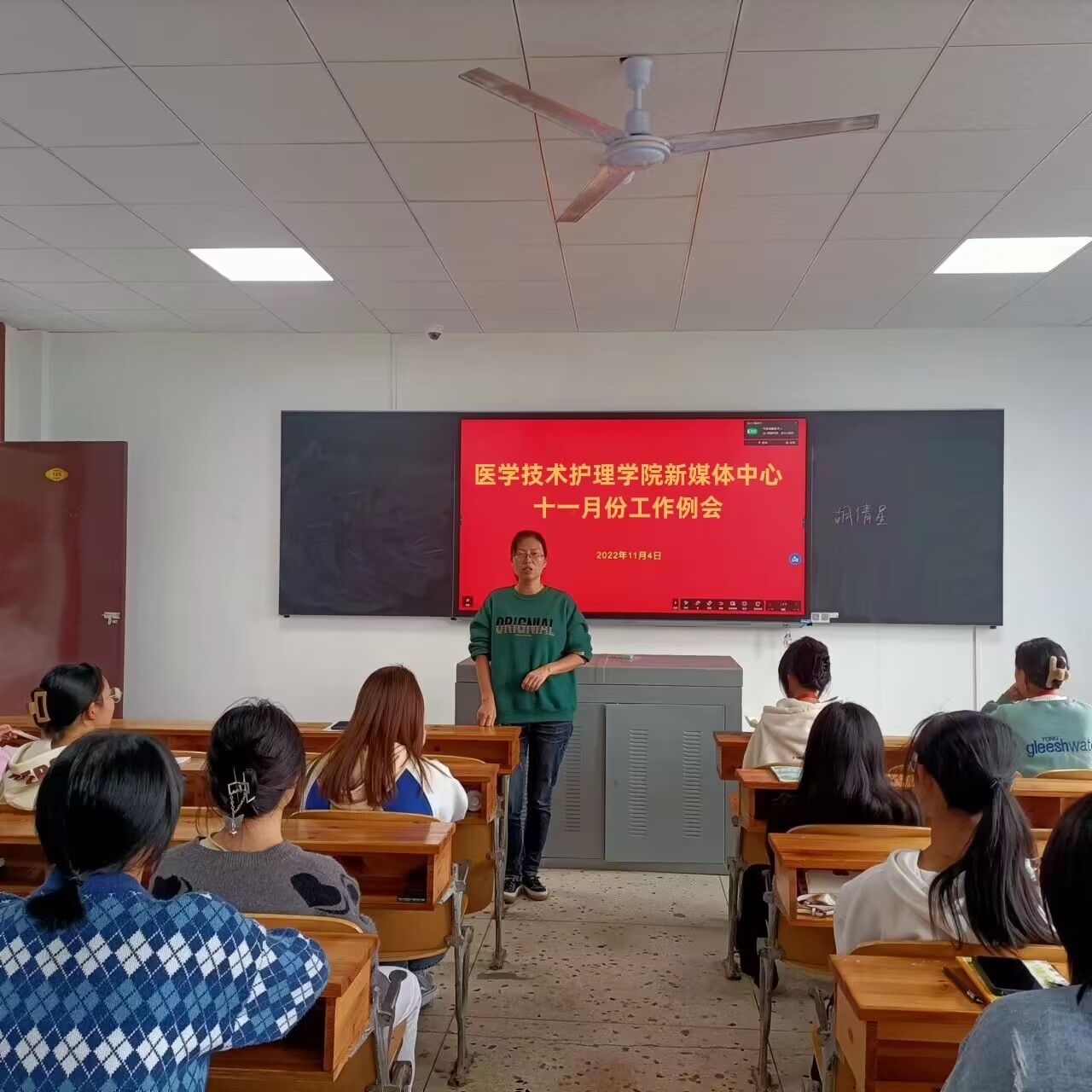为进一步落实学院新媒体中心各项工作及推动各项宣传工作的顺利开展。11月4日中午,医学技术与护理学院新媒体中心于教学楼105教室召开十一月份工作例会。医护学院党总支书记邓丽,新媒体中心各负责人及在校各班级班宣传委员参加了此次例会。