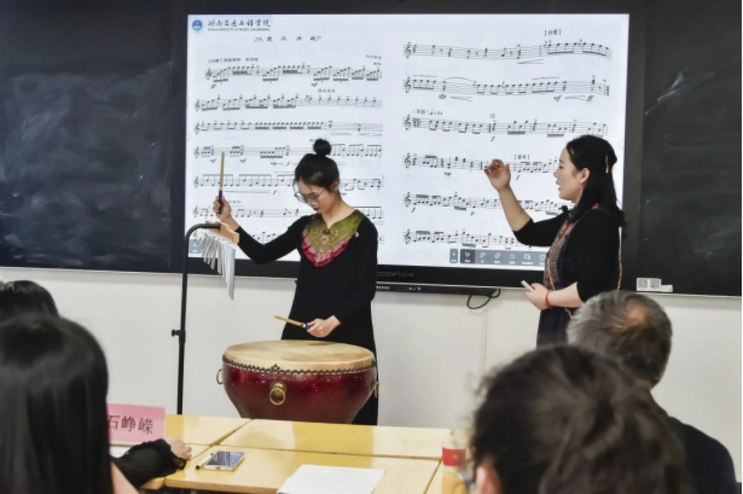 比赛现场,该院8个英语教学团队和4个音乐教学团队结合专业充分展示了参赛教师团队的专业功底和教学技能。