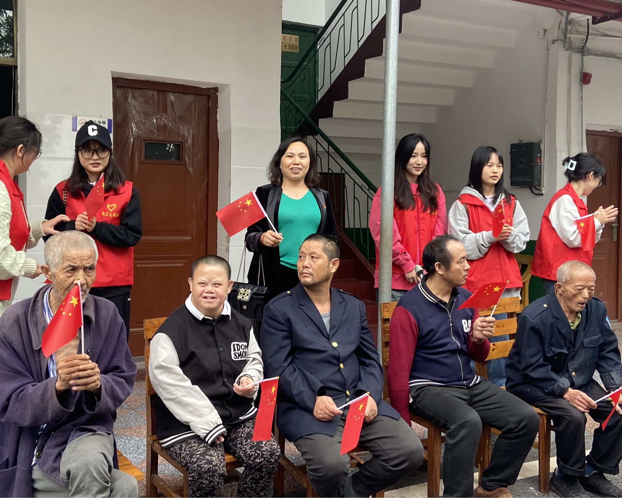 “夜半三更哟,盼天明。”“树上的鸟儿成双对,绿水青山带笑颜”“我和我的祖国,一刻也不能分割!”呆鹰岭敬老院传来阵阵歌声。歌曲演唱,舞蹈表演,戏曲串烧……,志愿者们发挥各自的专业优势,为老人们献上精彩的表演,老人们随着音乐挥动着手中的五星红旗,哼唱歌曲,气氛温馨融洽,整个敬老院洋溢着欢快的气氛,老人们脸上露出灿烂的笑容。这不仅展现了我院学生的专业功底,同时也给敬老院的老人们带来了欢笑与温暖,使得平日里安静惬意的敬老院变得格外热闹与温馨。