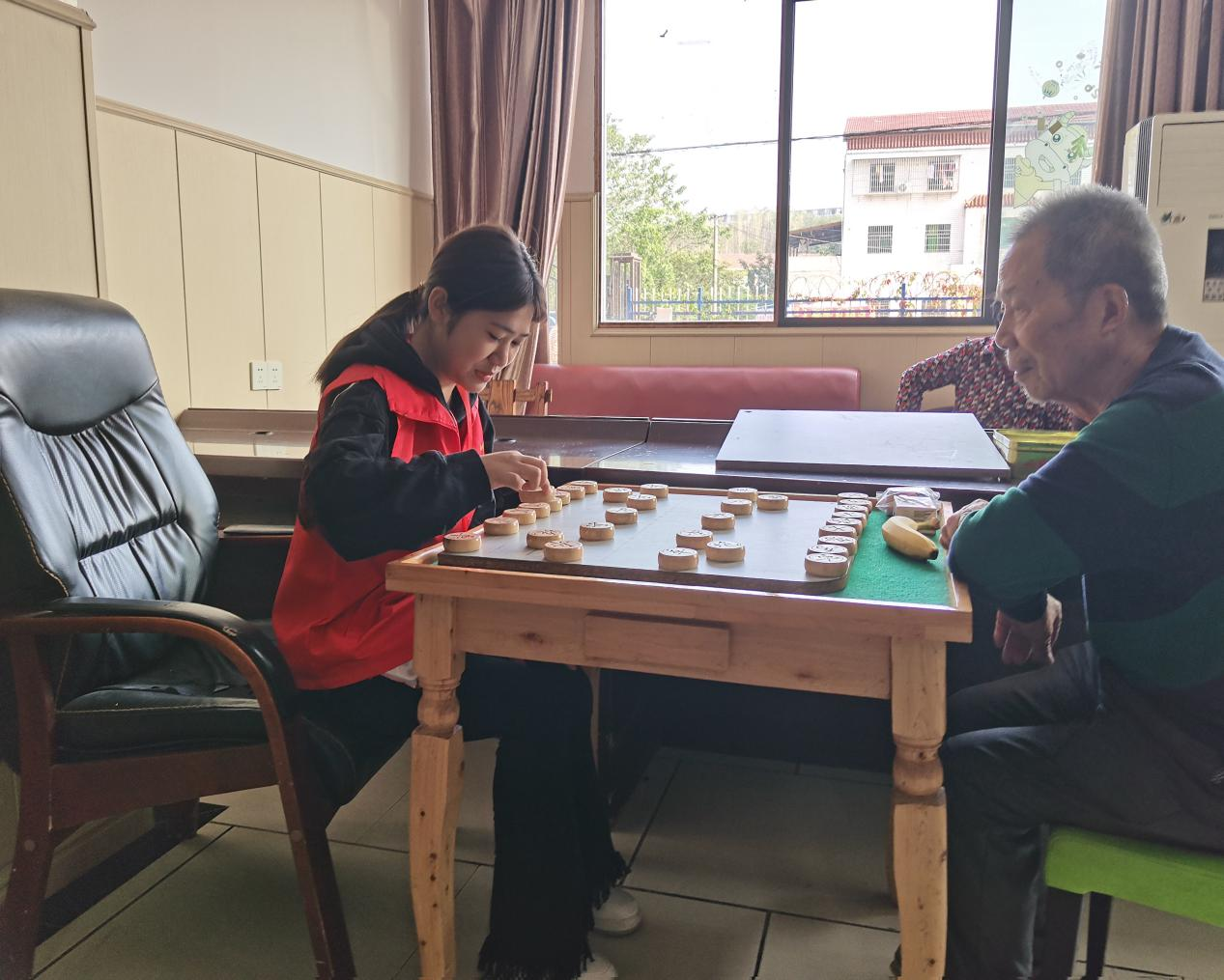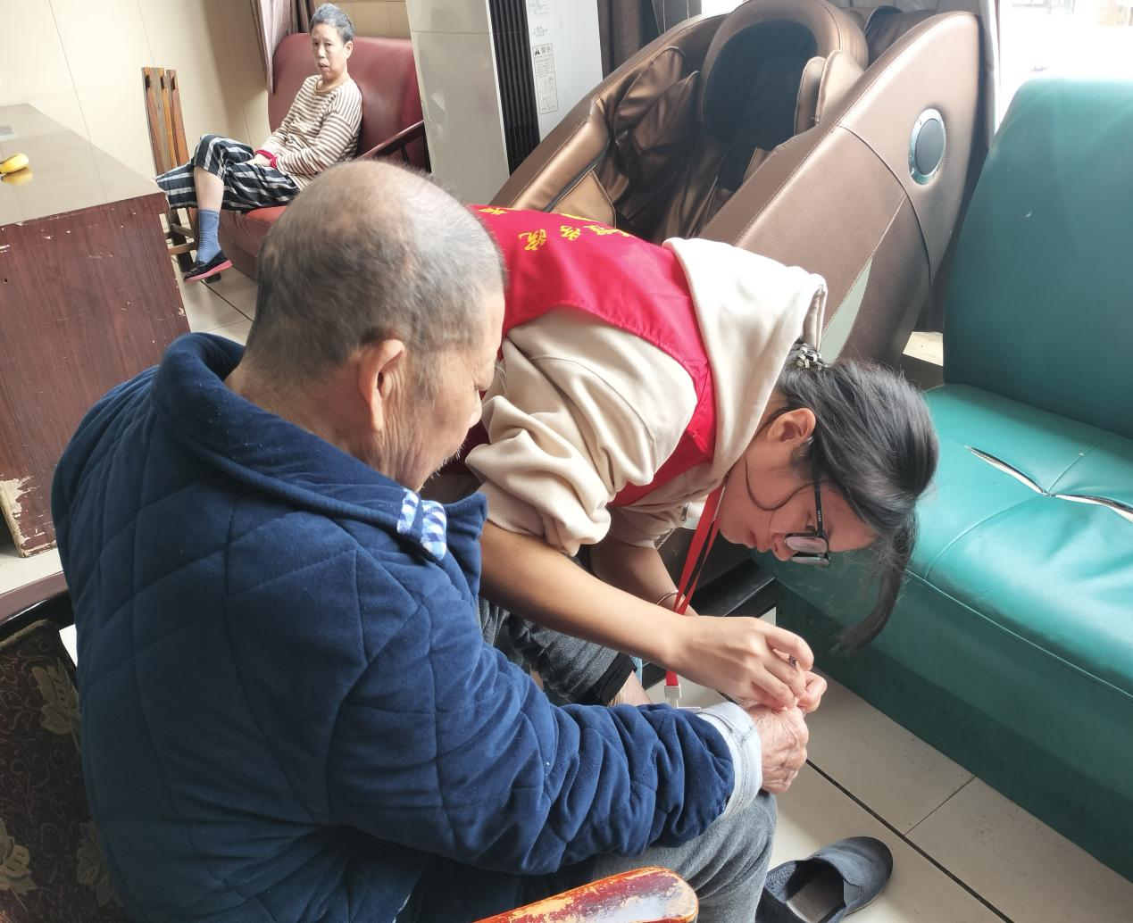 在敬老院,老师和学生们与老人亲切地交谈,向大家宣讲关于养生的知识,同时还为老人们修剪指甲、捶背按摩、下象棋、一起唱红歌、跳舞,帮助老人打扫卫生……志愿者们与老人融洽相处,真情流露。敬老院的老人们对志愿者的爱心善举表示感谢,同时也被志愿者的暖心热情深深感动着。