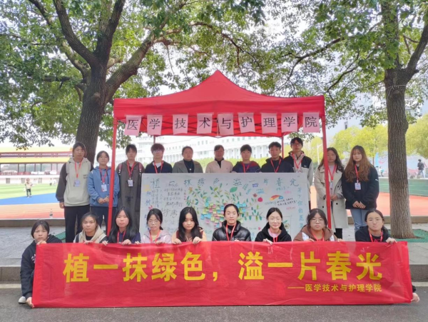 为领悟雷锋精神的时代内涵,提升我校师生的环保意识。3月12日,医学技术与护理学院在教学楼前开展“植一抹绿色,溢一片春光”植树节主题活动。