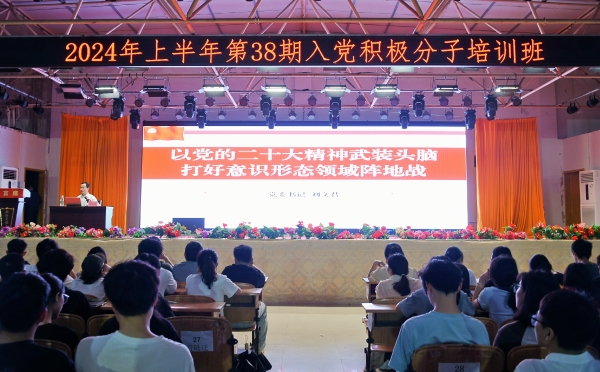 本网讯(通讯员 王强 李水华)4月24日晚,校党委书记刘文君以“以党的二十大精神武装头脑 打好意识形态领域阵地站”为题为全体学员上了一堂主题鲜明、内涵丰富的党课,至此,学校第38期入党积极分子培训班圆满结课。