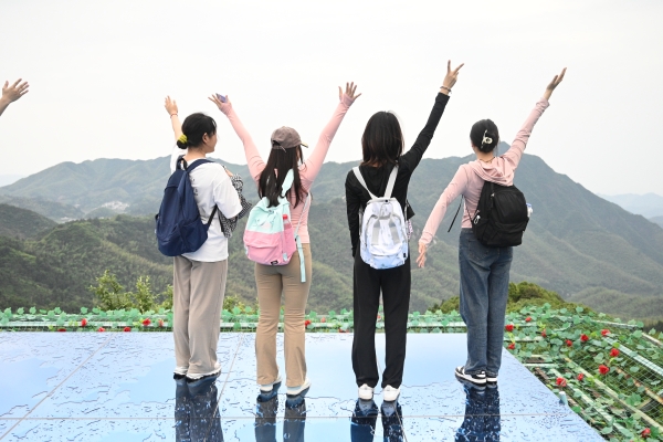 在导游的引领下,大家迎着霏霏细雨,拾级而上,登上省级风景名胜区天堂山,观赏了盐茶古道、有机茶园等特色景点。雨中的天堂山,空气更加清新,景色更加迷人。风韵犹古的清代民居,飘然若仙的水上飞伞……将天堂山风景名胜区点缀得异彩纷呈。