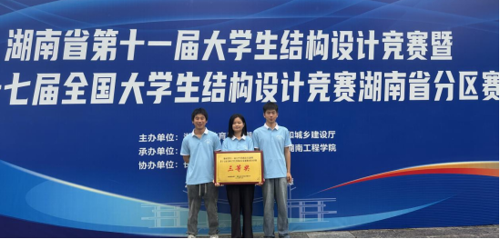 本网讯(通讯员 郑明)5月17日-5月19日,湖南省第十一届大学生结构设计竞赛暨第十七届全国大学生结构设计竞赛湖南省分区赛在湖南工程学院进行。湘交院共有三支队伍参赛,交通运输工程学院蔡双阳、曹果指导的刘志涛、李谢、秦杰刚和郑明、涂宇指导的王楚鑫、杨海铭、周洁颖均获省二等奖,周敏、熊桂指导的曾嘉维、胡柯溶、伍丁获省三等奖,我院在结构设计竞赛中首次实现三支队伍均获奖的佳绩。