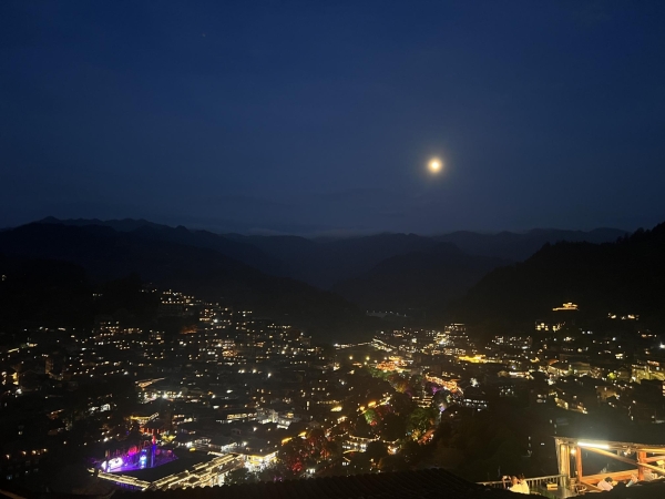 黄昏时分,西江千户苗寨千家万户都亮起了灯。随着天色越来越暗,西江千户苗寨变成灯的海洋。师生们又都沉醉在西江千户苗寨如梦似幻的夜景里。 (一审:石峥嵘  二审:李水华  三审:赵红深)