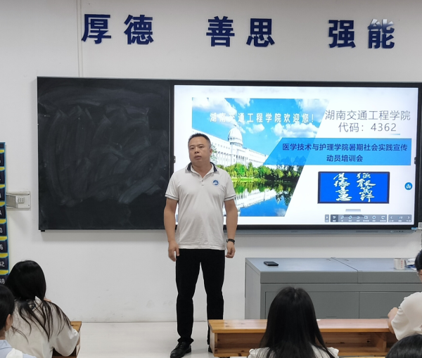 为全面提高大学生的实践能力和社会责任感,6月19日中午,医学技术与护理学院在201教室召开了2024年暑期社会实践培训会。学院党总支书记邓丽、党总支副书记兼团总支书记刘建军、辅导员老师及参加社会实践学生代表130余人参加会议。会议由刘建军副书记主持。