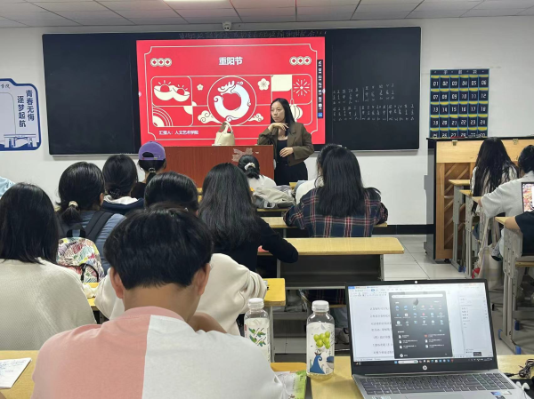 本网讯(通讯员 李亚男)在重阳节来临之际,为弘扬中华民族尊老敬老的传统美德,引导学生了解重阳节的文化内涵,培养学生的敬老意识,让爱老敬老的传统美德在学生心中生根发芽。10月10日晚,人文与艺术学院各班开展了别开生面的“浓情重阳,敬老爱老”主题班会。