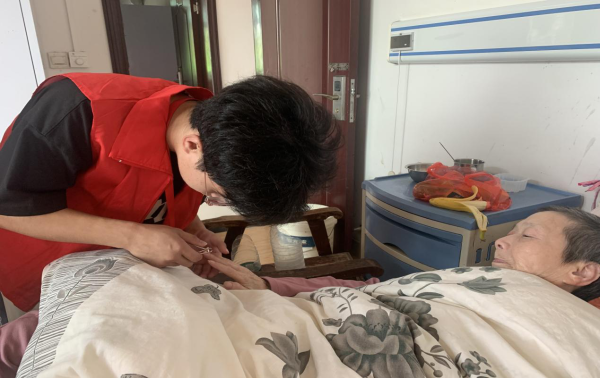 志愿者为老人修剪指甲