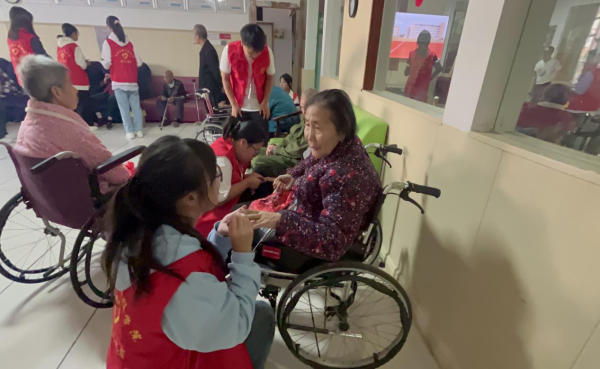 活动当天,教工党员带领志愿者们为老人送去了牛奶、水果、面包等慰问品,志愿者们还利用专业所学给老人们量血压、测心率,有针对性地给老人提供生活、饮食等方面的健康建议,受到老人们的一致好评,并坐下陪他们聊天、谈心和宣传养老知识,在相互交流中,老人们也会分享自己过往的故事和经历。与此同时,志愿者们也会主动帮老人捶背,陪他们下象棋,帮忙打扫卫生,还为老人们表演了精心编排的歌曲、舞蹈节目。志愿者们让敬老院充满了欢声笑语,在这温馨的氛围里老人们的脸上也洋溢着幸福的笑容。