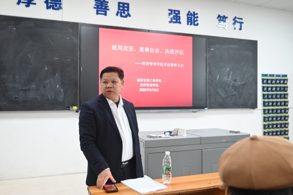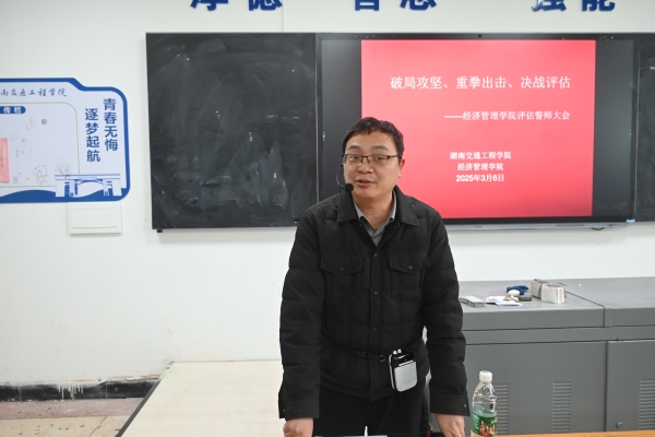 本网讯(通讯员 赵红深 摄影 何心怡)3月6日中午,经济管理学院召开决战决胜本科教学工作合格评估冲刺誓师大会。常务副校长彭文武出席会议并讲话,院长朱忠祥、副院长王冰、党总支书记赵荣华、副书记张敬会及学院全体教职工参加会议。朱忠祥主持。