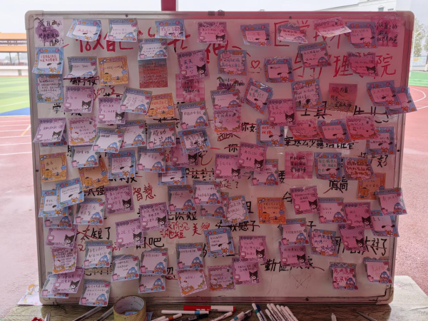 在这个特别的日子里,我们精心准备了丰富多彩的庆祝活动。在教学楼里,志愿者们将把满载祝福的贺卡和小礼品送到每一位女教师手中,表达我们最诚挚的敬意。在红棚活动区,我们邀请每一位驻足停留同学,写下对身边女性的赞美与祝福,并且给到留下祝福的女同学随机赠送精美的手串,希望将这份温暖传递给生命中最重要的人那些闪耀在女性身上的美好品质——坚韧、智慧、善良、勇敢,都将化作五彩的便签,装点我们的校园让我们携手共建一个尊重女性、关爱女性的和谐校园。愿我们都能以欣赏的眼光看待身边的每一个她,用行动支持女性发展,用真心传递温暖力量。