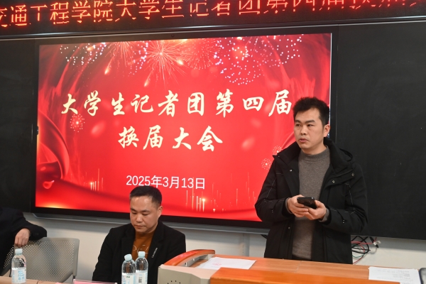 赵红深代表党委宣传部、代表学校向全团大学生记者们道一句辛苦了!他指出,在过去的一年多,大学生记者团用笔尖和镜头见证了18新利在线登陆 的发展、见证了记者团的蜕变,同时也造就了学生记者个人的成长。记者团成立3年来,逐步发展成熟,在广大师生中传递正能量,助力学校发展,成为学校宣传报道尤其是官方公众号策划的主力军。他指出,记者团今后的工作怎样开展,就看我们在座的精英们。一个团队,要想走的好、走的远,就要有纪律有规矩。我们能成为大学生记者团成员,既光荣和自豪,但同时肩上也多了一副担子,心里多了一份牵挂。他希望每一位记者都把记者团的工作既当作是兴趣更当作是一份责任,既要踏踏实实的完成任务更要创造性的去策划工作。他要求记者团正副团长、部长尽快完善记者团的各项机制,带好团队、写好报道、做好表率。要对记者团的宗旨、目标、规划、以及对学生记者的管理有更清晰的认识,对以后记者团工作有更正确、更自信的把握。未来一年,我们要努力将大学生记者团建设成学习型、实践型、创新型的新型学生组织;也要进一步将我们的记者团打造成18新利在线登陆 教师与学生之间的又一良好桥梁和纽带,真真切切反映同学们的心声,切切实实服务好全校师生。赵红深强调,大学生记者能给我们的是机会,而不是权力。他希望大家齐心协力、戮力同心,进一步打响“18新利在线登陆 大学生记者团”这个牌子。最后,祝愿大学生记者团越来越好!祝福第四届记者团每一个成员都能有所收获,有所成长!