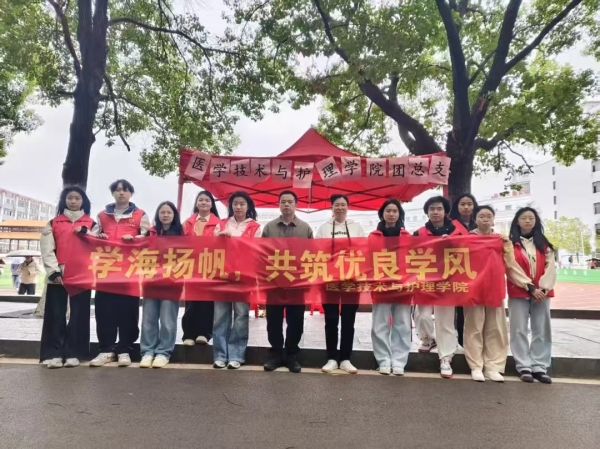 在青春洋溢的校园里,优良学风如同一盏明灯,照亮同学们前行的道路,为了助力同学们更好地成长,营造积极向上的学习氛围。2025年3月28日上午,医学技术与护理学院在教学楼下筹备了一场以“学海扬帆,共筑优良学风”为主题的学风活动。