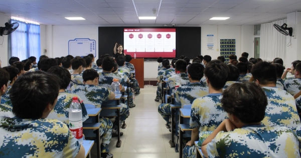 各新生班级开营动员会上,辅导员的讲话、带队教官和学生代表的发言提振了士气、鼓舞了斗志,同时也提高了同学们对军训的期待与对军人的敬畏。“流血流汗不流泪,掉皮掉肉不掉队”,即使头顶烈日,同学们也毫不懈怠,身体力行地践行着国旗下的誓言。