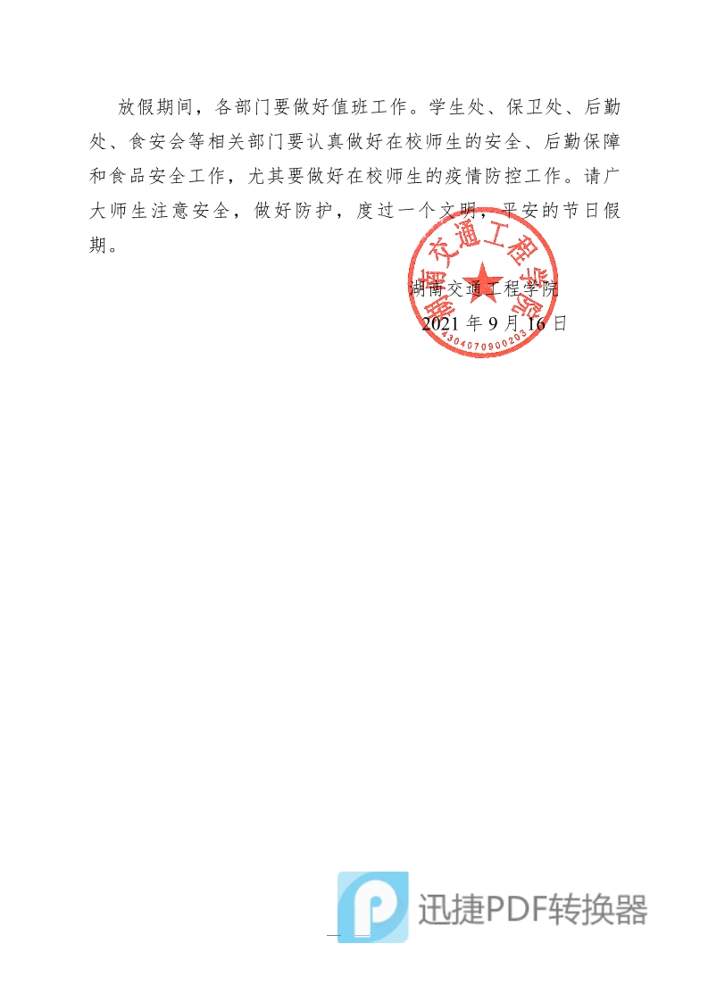 关于2021年国庆节放假暨学校实施冬令作息时间的通知