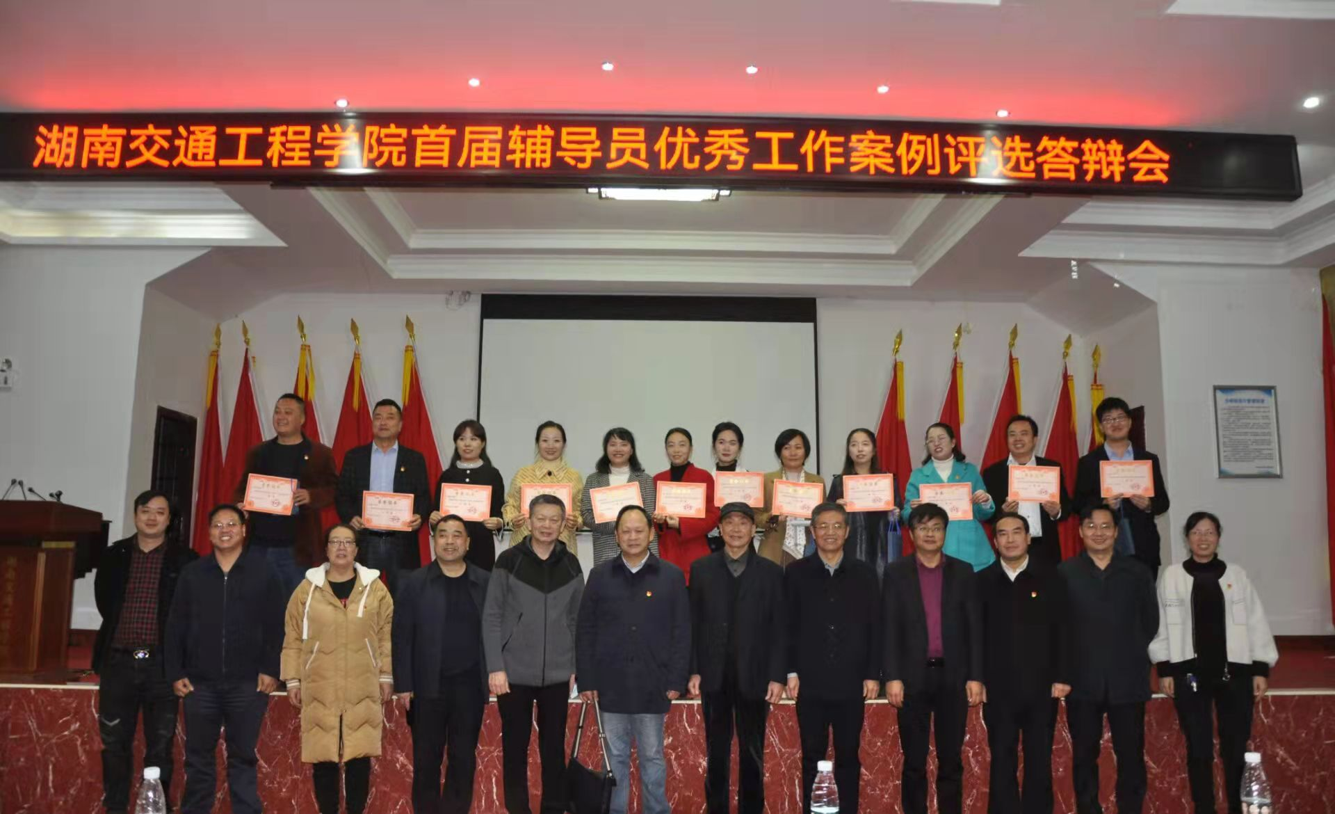 我院电信学院辅导员邓晶晶荣获二等奖;张敬会、刘建军分别荣获三等奖。在答辩会的舞台上我院三位辅导员各显神通,通过视频、PPT展示等形式分析案例并现场接受评为的点评和提问,对于评委的提问都对答如流,充分展现出了我院辅导员较好的专业素养和能力水平。