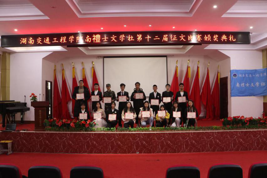 本网讯(通讯员 胡可)12月1日,南禮士文学社第十二届征文比赛“看你我青春之际,扬交院学子风采”颁奖典礼在航母楼一楼会议室隆重举行。校党委委员、党务工作部部长、护理学院党总支书记兼南禮士文学社指导老师邓丽,图书馆老师张海兵、万魏,共青团18新利在线登陆 委员会李丽平,衡高文委主席唐震民,社团联合会负责人唐果及学校其他社团负责人出席颁奖典礼,全体社团成员到会。