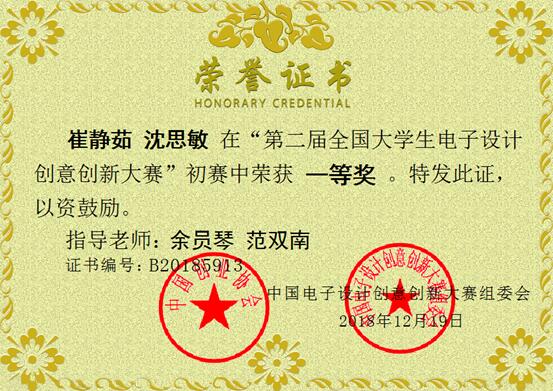 我院余员琴、范双南老师指导的崔静茹、沈思敏二位学子提供的作品“森果”、“EC衣阁”脱颖而出,在第二届全国大学生电子设计创意创新大赛初赛中分别取得一、三等奖,复赛荣获二等奖的好成绩。