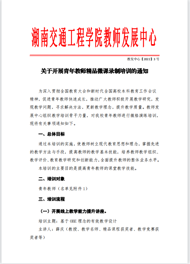 关于开展青年教师精品微课录制培训的通知