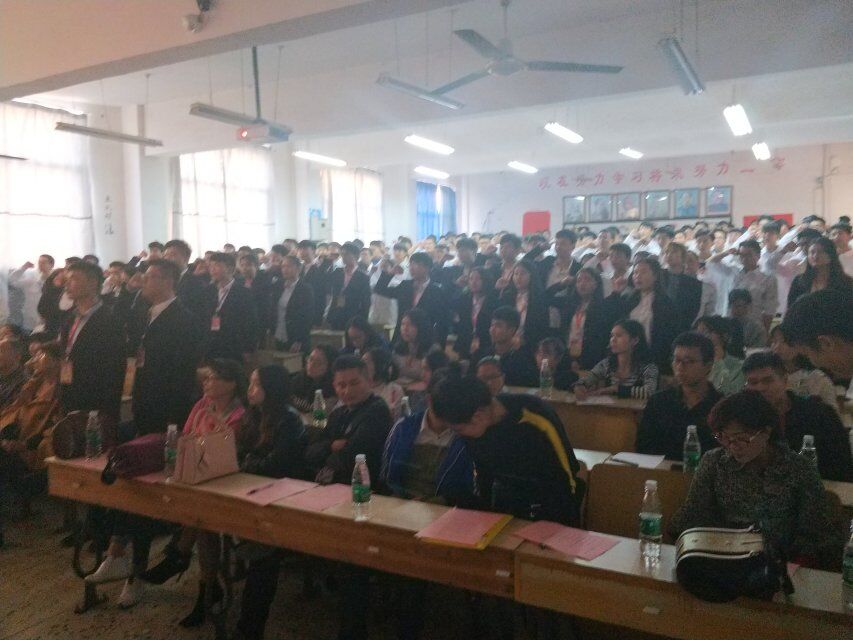 全体学生干部宣誓:请各位宣誓人注意!请将握拳的右手举起过肩,跟我一起宣誓,我宣誓:坚决服从学校安排,严格遵守团委学生会章程,严格执行团委学生会决议,认真履行学生干部职责,时刻牢记学校纪律,勤奋学习,积极工作,恪尽职守,团结协作,为建设美丽18新利在线登陆 电气与信息工程学院而努力奋斗!