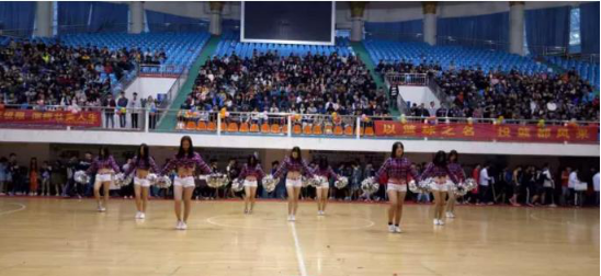 为了让场面更有气氛,学校还组织了啦啦队,一支开场舞成功的带动了气氛,一场完美的啦啦操过后,请出院部领导为我们的“奥创杯”篮球赛活动进行剪彩仪式,并宣布我院“奥创杯”篮球赛正式开始。
