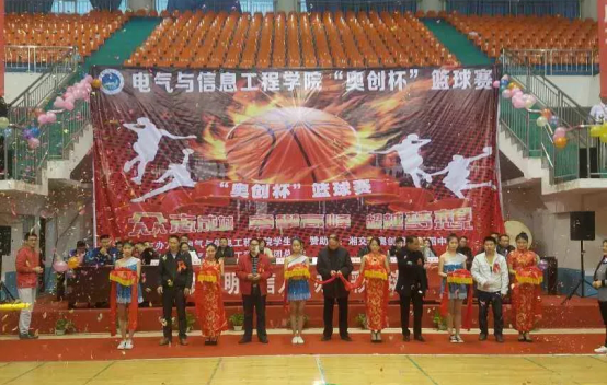 本网讯记者摄影(王芳军),为丰富同学们的课余生活,进一步推动体育活动开展,带动体育活动的风气,增强班级凝聚力,也给同学们展示自我的舞台,我院于2017年11月14日在体育馆举行了“奥创杯”篮球赛开幕式。