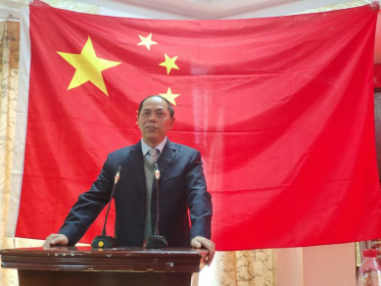 大会第二项,全体起立高唱《国歌》。党总支副书记张敬会宣读新一届两会各部门副部长以上成员名单,主席台领导及辅导员分别为他们颁发聘书。随后,新任职的团总支常务副书记贺湘银、学生会执行主席林章敏以及两会新干代表王泽睿先后发言。