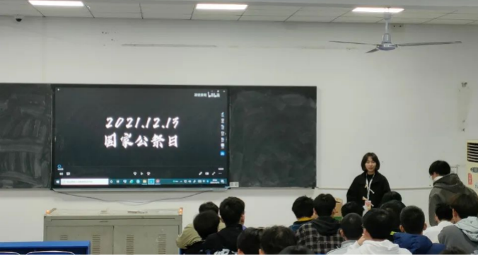 今年是南京大屠杀惨案发生83周年。2021年12月晚8点45分,电信学院于教学楼602举办了“铭记历史,吾辈自强”国家公祭日悼念活动。悼念会伊始,各班向主持人金巧同学汇报实到人数后,团总支副书记曾若松宣布2021.12.13国家公祭日的纪录片观影会正式开始。