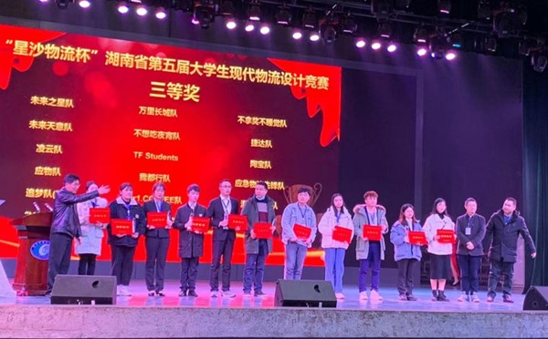 本网讯(通讯员娄晓梦)由湖南省教育厅主办的学科竞赛“星沙杯”第五届湖南省大学生现代物流设计竞赛12月26日在湖南财政经济学院落下帷幕。我校参赛的3支团队全部获奖,其中我校涂宇、李玲老师指导的“星火队”荣获一等奖;娄晓梦、姜蔚霞老师指导的“万里长城队”和方瑜、 老师指导的“乘风破浪队”荣获三等奖。我校获得“优秀组织奖”(全省共20所高校参加此赛事,仅6所高校获此殊荣)。