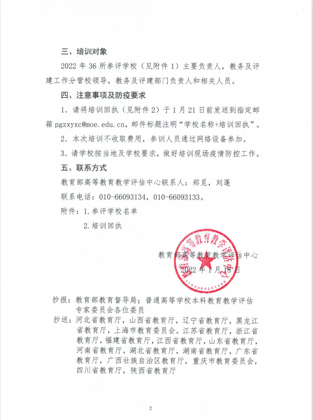 转发:关于开展2022年本科教学工作合格评估参评学校培训的通知