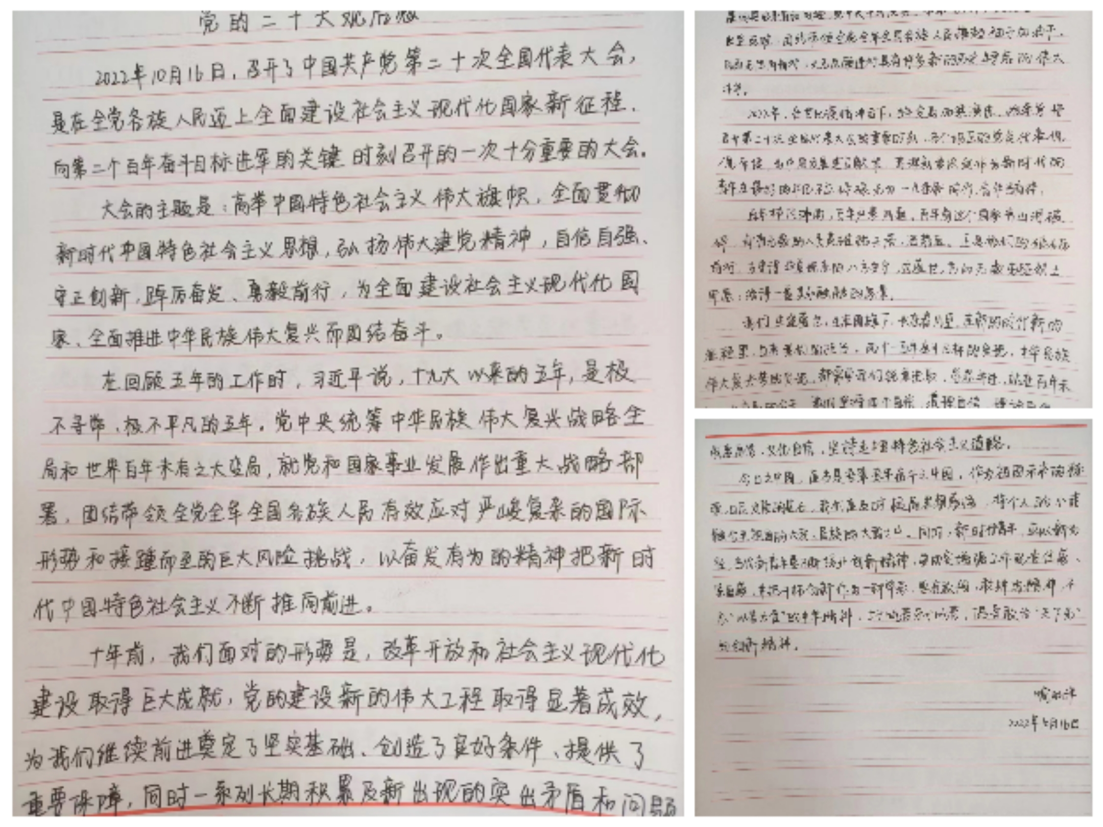 在观看直播现场广大师生边看边做好记录并就报告中的新提法新思想进行探讨和交流切实把握报告广度和深度深刻领会报告内涵与意义党的二十大是在全党全国各族人民迈上全面建设社会主义现代化国家新征程向第二个百年奋斗目标进军的关键时刻召开的一次十分重要的大会对于鼓舞和动员全党全国各族人民坚持和发展中国特色社会主义全面建设社会主义现代化国家全面推进中华民族伟大复兴具有重大意义报告系统总结过去五年的工作和新时代十年的伟大变革深刻阐释了新时代坚持和发展中国特色社会主义的一系列重大理论和实践问题明确提出新时代新征程中国共产党的使命任务科学谋划未来五年乃至更长时期党和国家事业发展的目标任务和大政方针