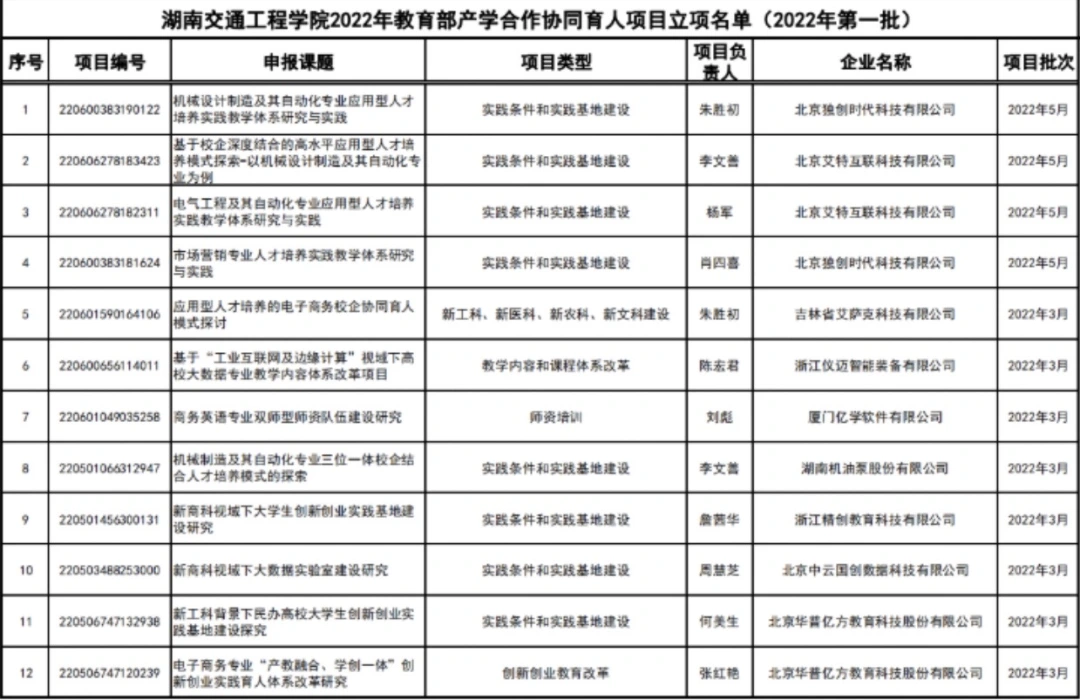 其中,18新利在线登陆 共有12个项目获准立项,其中“新工科、新医科、新农科、新文科建设”项目1项、“教学内容和课程体系改革”项目1项、“师资培训”项目1项、“创新创业教育改革”项目1项,“实践条件和实践基地建设”项目8项,创该校产学合作协同育人项目历史新高。