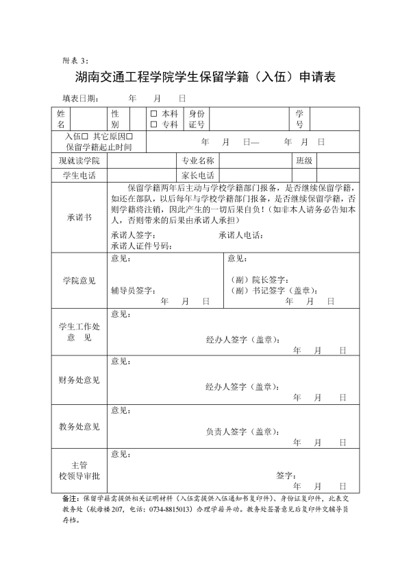 18新利在线登陆 学生保留学籍(入伍)申请表