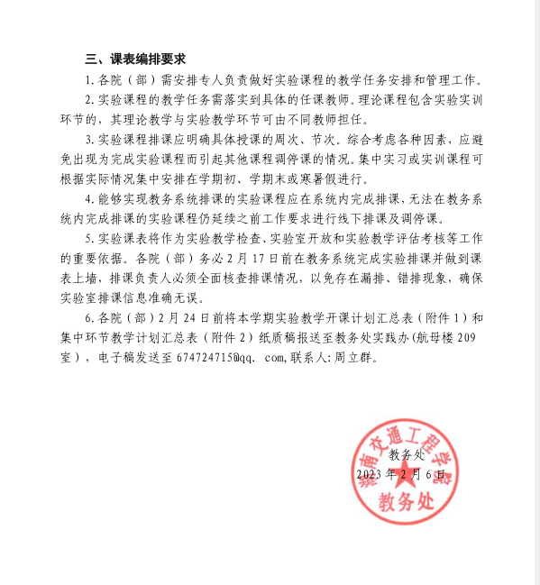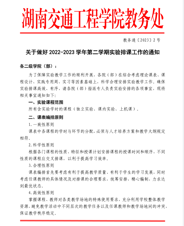 关于做好 2022-2023 学年第二学期实验排课工作的通知