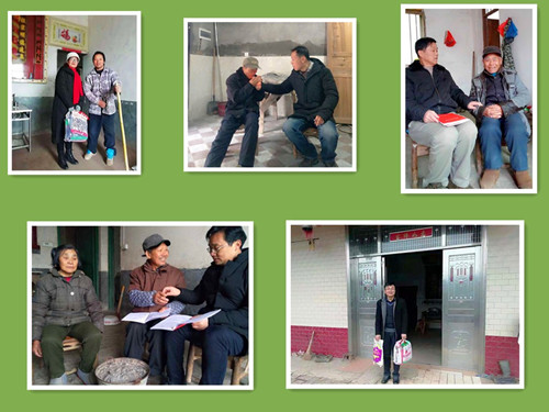 与市直扶贫工作队、群峰村干部进行简短的对接交流询问座谈以后,我校扶贫工作队成员马不停蹄急不可待地分头直奔8个结对贫困户,他们一个个肩扛精装大米,手提木耳蘑菇红枣等,顶着寒风,冒着冷雨,行走在田间地头,将党和政府的温暖关爱及时送到乡亲们的手里。