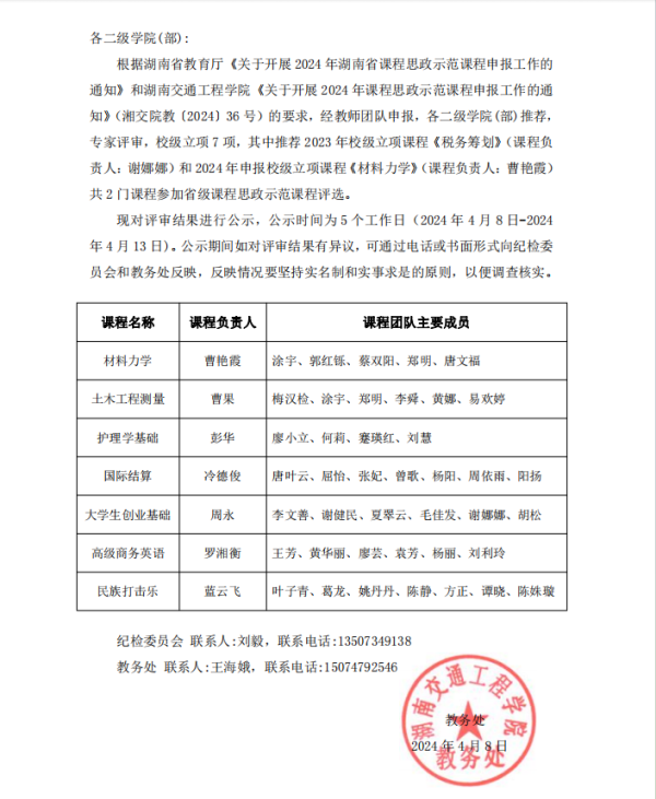 2024年18新利在线登陆 课程思政示范课程评审结果公示