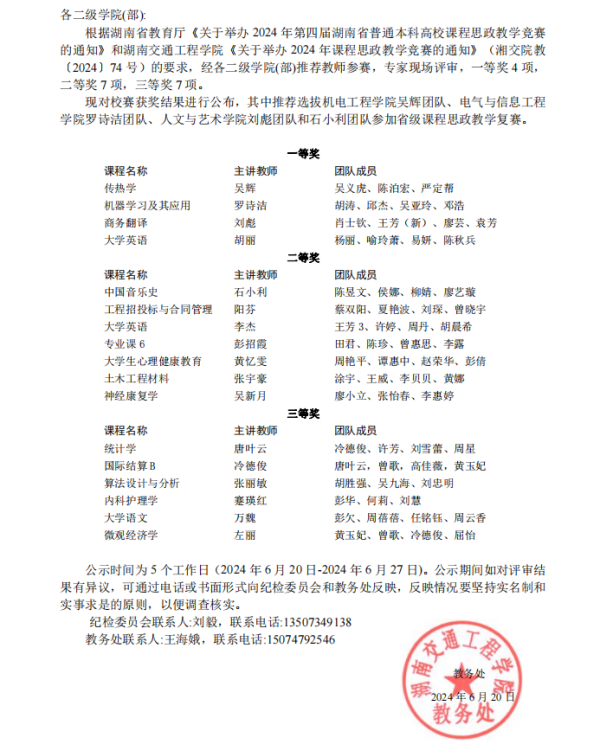 2024年18新利在线登陆 课程思政教学竞赛结果公示