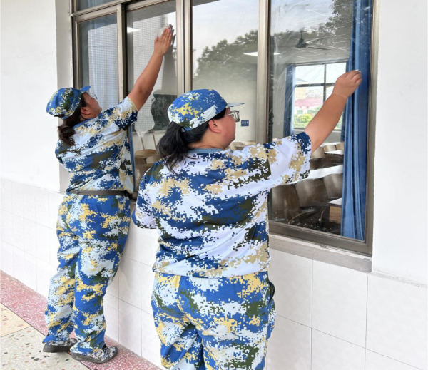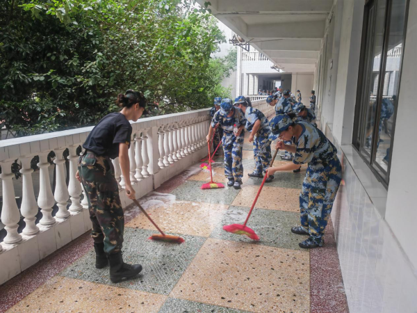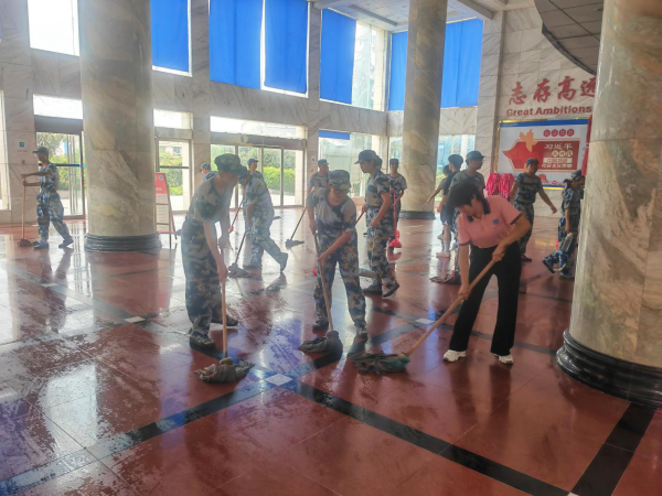 在劳动教育活动中,刘建军副书记,刘春香老师和教官们秉持着以劳育美、以劳树德的价值导向,以身作则,亲身示范,弯下腰,俯下身,指导学生扫地、拖地、清除灰尘污渍等。同学们以高涨的热情和积极态度对教学楼的走廊、教室、宿舍以及公共区域进行认真细致地打扫。平凡的辛劳也是光荣的闪耀,同学们的辛勤劳作换来了教学楼的焕然一新。