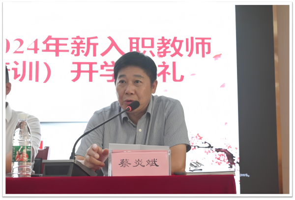 蔡炎斌代表学校对各位新进教师的到来表示热烈欢迎。他对新进教师提出四点希望:一是牢记初心使命,涵养高尚师德。作为一名新时代高校教师要深刻认识自己所承担的庄严而神圣的使命,要着力提升自身的“知者”之德、“育者”之德和“研者”之德,切实做到以德立身、以德修学、以德履职、以德育魂。二是夯实专业素养,潜心教书育人。教育大计,教师为本。我们要树立终身学习的理念,学习新知识、新技术、新理论。紧扣时代脉搏,聚焦高质量发展,深耕自己的专业学科领域或管理岗位,精耕细作、精雕细琢,坚持不懈、久久为功。三是明晰职业规划,丰富人生价值。大家选择了教师这个职业,就要热爱教育事业,做好为之终身奋斗的准备。希望各位教师找准人生价值的定位与方向,继承和发扬我校团结协作、无私奉献的精神,带着教育情怀投入事业。四是实现角色转变,处好各种关系。从入职交院的这一刻起,大家就要积极做好角色转变,迅速适应新的环境,适应教师职业,适应交院生活。来到交院,你们可能会遇到各种困难和问题,希望你们敢于面对即将到来的挑战。