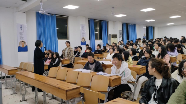 医学技术与护理学院,特邀弘一律师事务所阳莲花律师为近百名青年学生进行普法宣传。党总支副书记兼团总支书记刘建军主持。