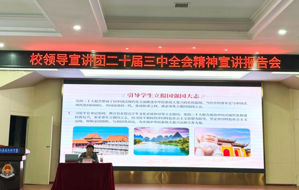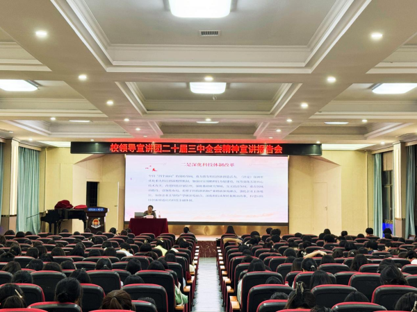 为深入领会党的二十届三中全会精神,增强学生理想信念,引导学生深刻认识国家发展战略与个人成长的紧密联系,推动二十届三中全会精神在校园内落地更生,医护学院于11月12日晚上7点,在航母楼101组织开展宣讲活动,由校领导刘平娥名誉校长为医护学院宣讲党的二十届三中全会精神。学院党政领导、全体教师和学生代表300余人参加会议。会议由党总支书记邓丽主持。
