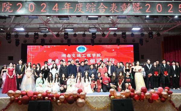 本网讯(通讯员   赵红深  张湘宁 摄影 大学生记者团宁慧琳  李林山  曾垂洋  廖紫娴  宁可  何姿洁 )为全面总结2024年度团学工作,选树表彰优秀师生,12月24日晚,学校在大学生活动中心举办2024年度表彰大会暨2025年元旦晚会。党委书记刘文君、高级顾问韦成龙、名誉校长刘平娥、常务副校长彭文武、党委副书记冯良贵,副校长余孟辉、蔡炎斌,相关职能部门负责人,各二级学院院长、书记及师生代表共2000余人带着对新一年的美好期盼欢聚一堂,共赏视听盛宴。此次表彰晚会以线下精彩表演、线上同步直播的方式举行。